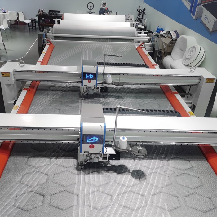 1. Независимая конструкция с двойным седлом и двойная система управления позволяют стегать две панели матраса одновременно, что повышает эффективность работы в два раза. Площадь помещения всего в 1,2 раза превышает площадь традиционного типа, а производительность — в два раза.