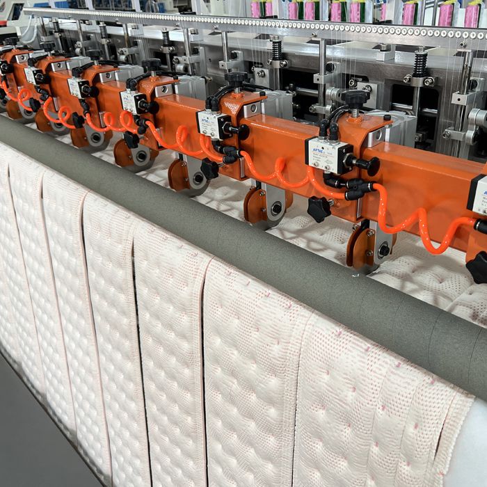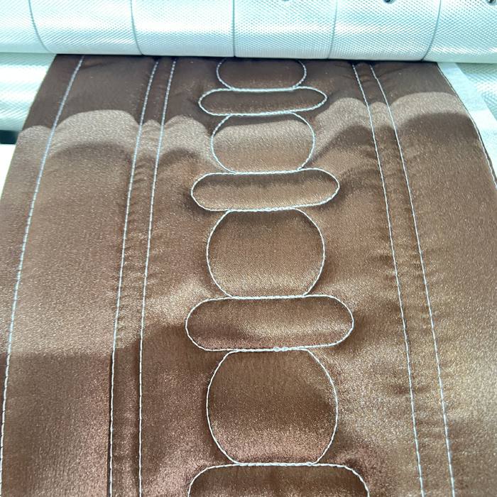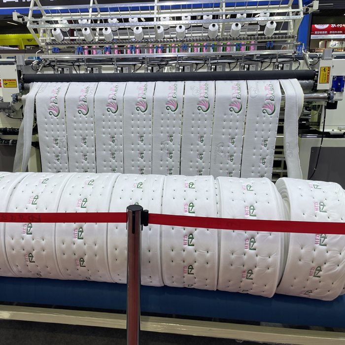 1. Эксклюзивная инновация: эта производственная линия имеет функции точечной вышивки, линейной стежки, украшения лентой, системы продольной резки и прокатки. (Запатентованная продукция).